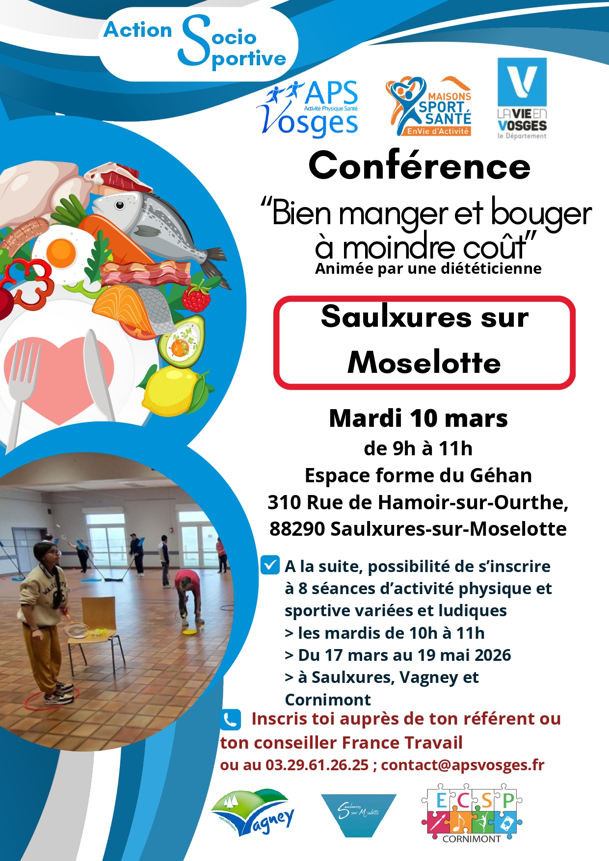 Conférence "Bien manger et bouger à moindre coût" animée par une diététitienne.