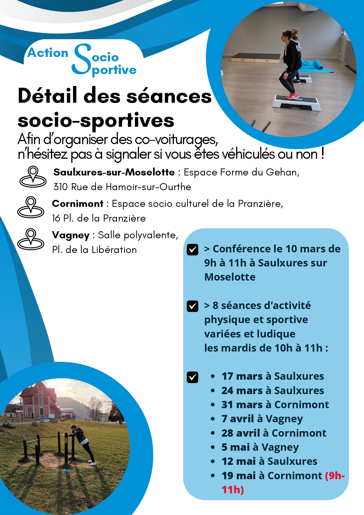 A la suite, possibilité de s'inscrire à 8 séances d'activité physique et sportive.