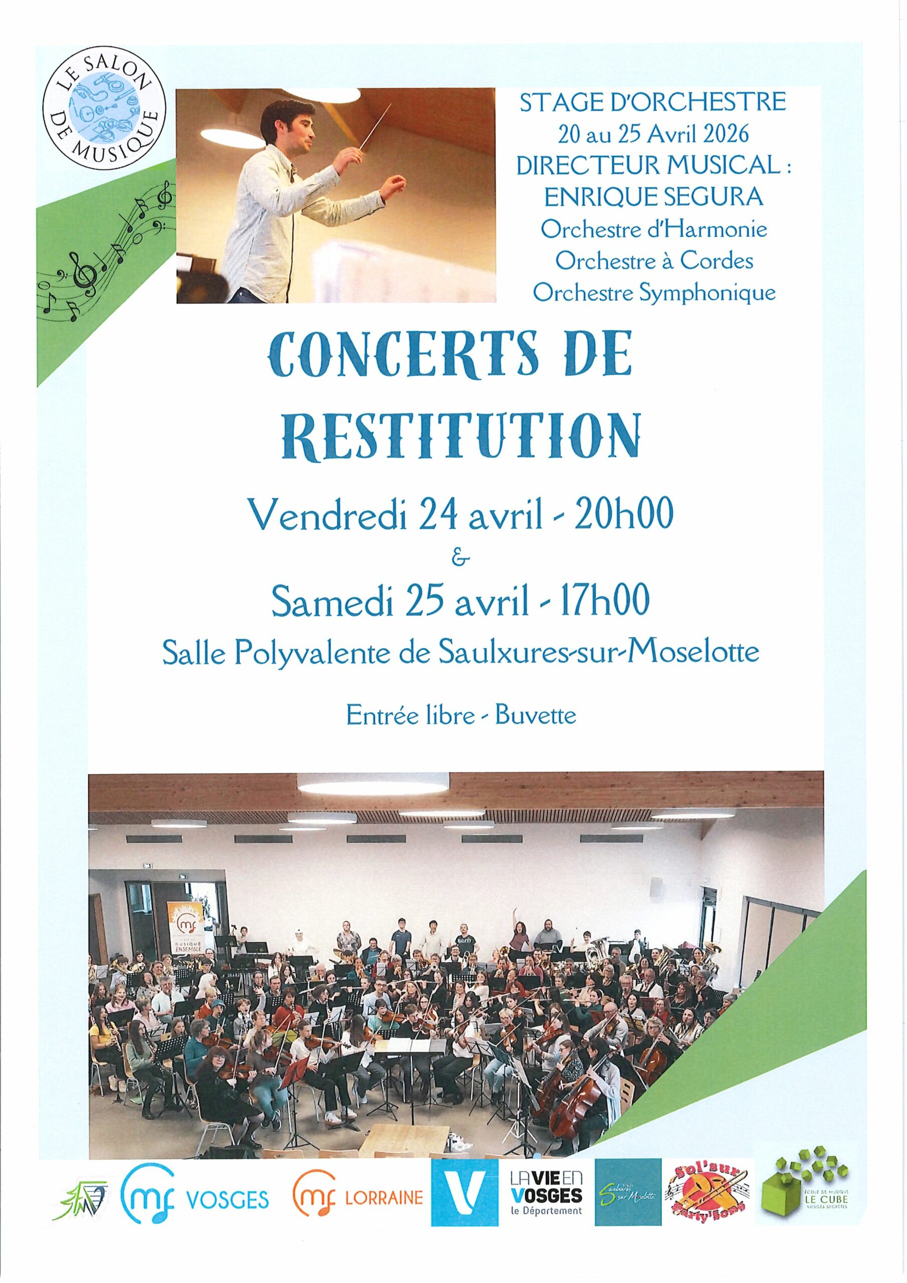 Concerts de restitution du stage d'orchestre, organisés par la Fédération Musicale des Vosges à Saulxures-sur-Moselotte.
