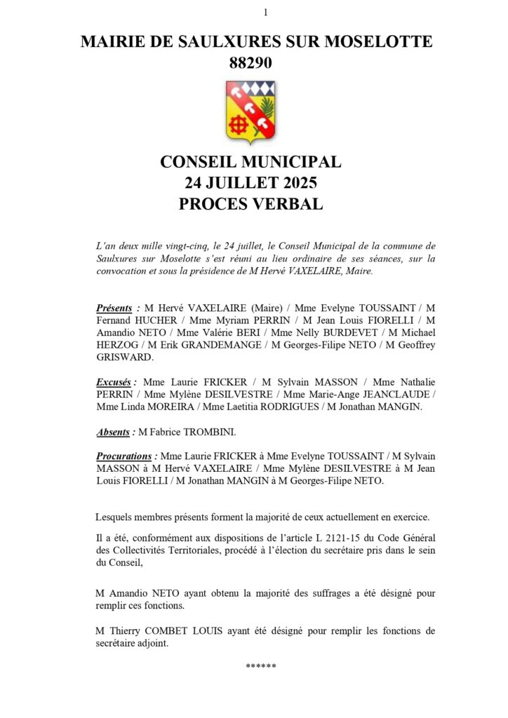 Consultez les comptes-rendus des conseils municipaux de Saulxures sur Moselotte